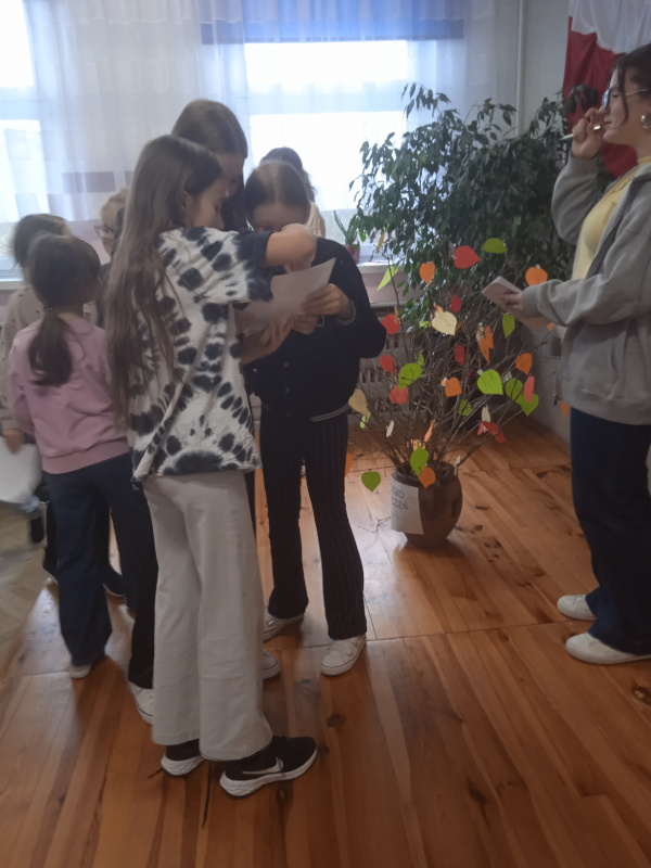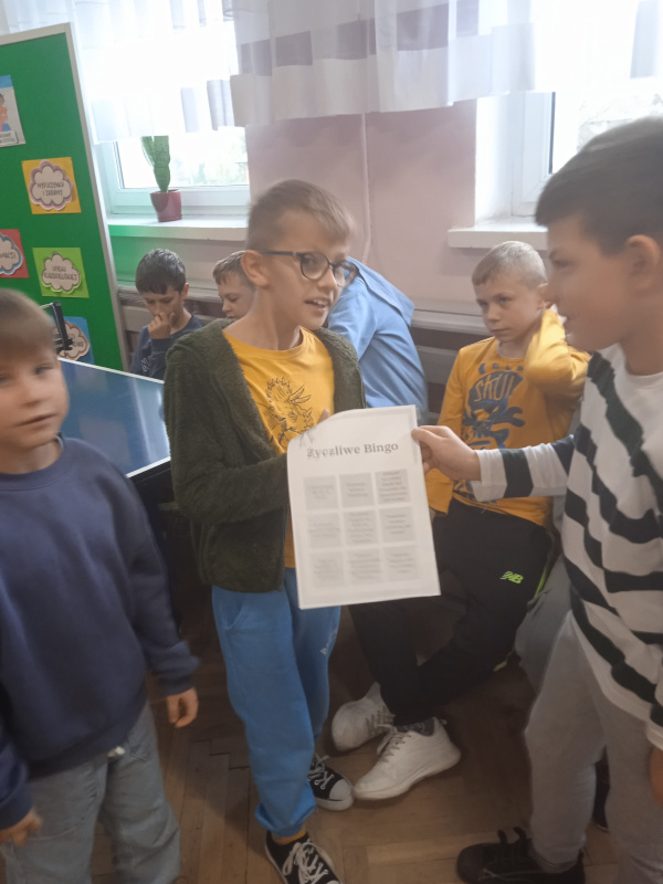 Tego dnia uczniowie mogli wziąć udział w kilku wyjątkowych atrakcjach: Drzewko życzeń – każdy mógł dopisać własne, pozytywne przesłanie i umieścić je na szkolnym drzewku. Dzięki temu powstała piękna, kolorowa przestrzeń pełna dobrych myśli. Quiz życzliwości – sprawdzał naszą wiedzę o empatii, kulturze osobistej i dobrych manierach. Kostka życzliwości – losowanie dobrych uczynków do wykonania okazało się świetną zabawą! Bingo życzliwości – uczniowie wypełniali pola, wykonując proste gesty dobroci, takie jak pomoc koledze, pochwała czy uśmiech do nieznajomego. Dopełnieniem zabawy była możliwość przeczytania „trudnych” tekstów z okazji Międzynarodowego Dnia Łamańców Językowych