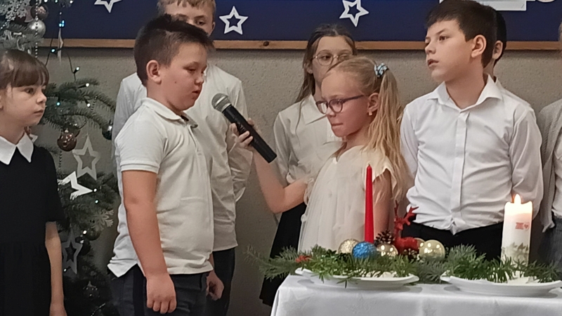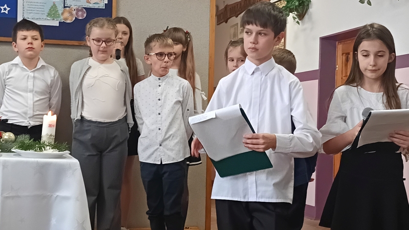 „Jest taki dzień, bardzo ciepły, choć grudniowy …” – słowa tej piosenki towarzyszyły nam podczas dzisiejszego spotkania bożonarodzeniowego. Tegoroczna akademia była nie tylko występem artystycznym, ale przede wszystkim lekcją empatii, miłości i wzajemnego szacunku. Choć świat pędzi do przodu, polskie Boże Narodzenie niezmiennie pachnie choinką, barszczem z uszkami i siankiem pod obrusem. To czas, w którym domowe zacisze staje się centrum wszechświata, a dawne zwyczaje łączą pokolenia. Młodzi artyści przypomnieli najważniejsze tradycje, które budują wyjątkową atmosferę tych świąt.