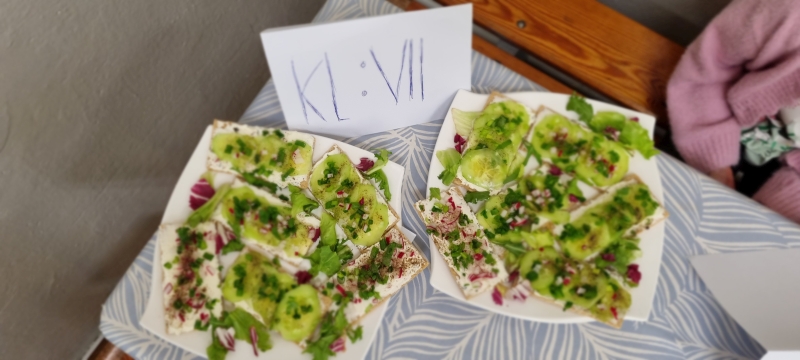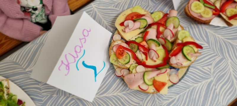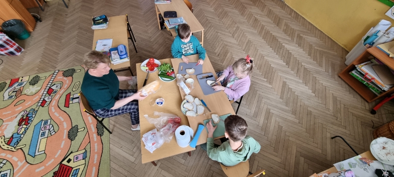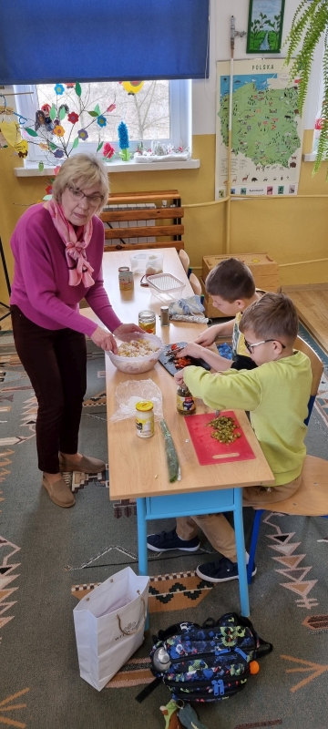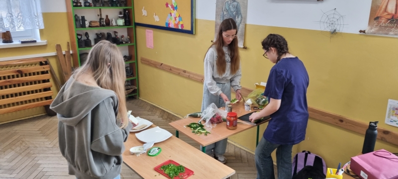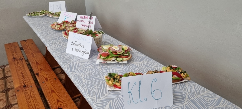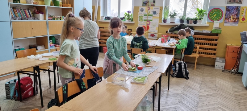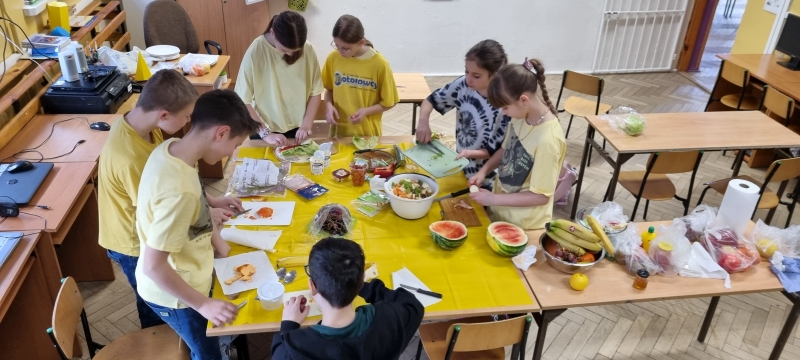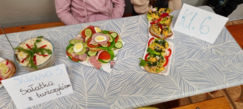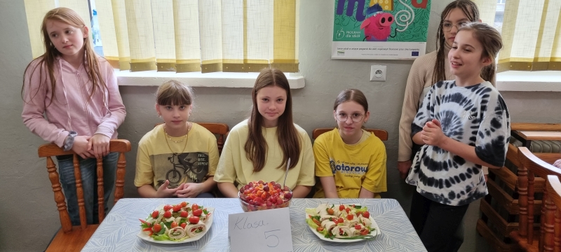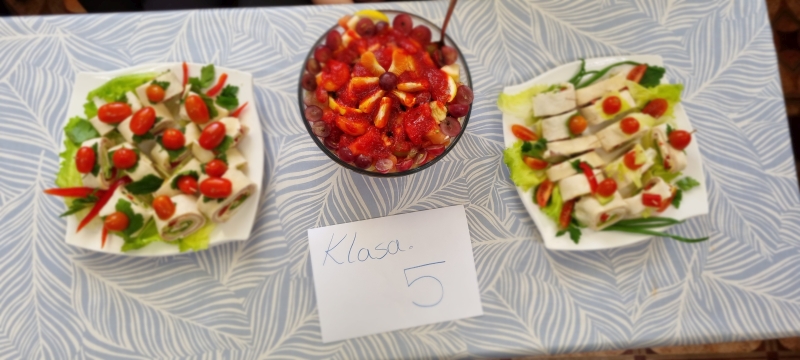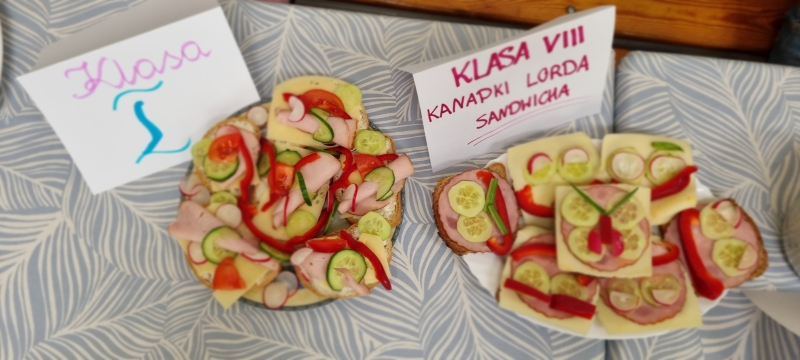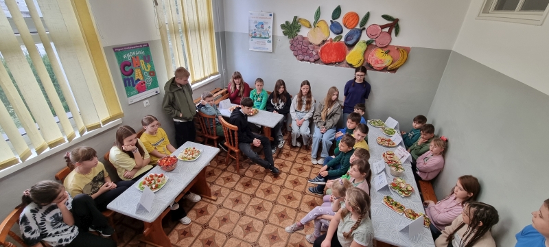 Każda klasa przygotowała również zdrowe przekąski, które następnie zostały zaprezentowane. Uczniowie opowiadali o sposobie ich wykonania oraz wykorzystywanych produktach, a na zakończenie wszyscy wspólnie degustowali przygotowane potrawy jako zdrowe drugie śniadanie.