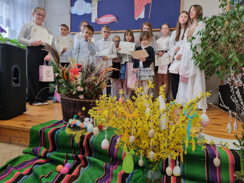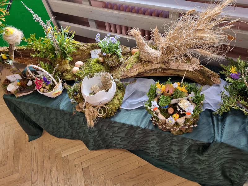 W naszej szkole odbył się konkurs z okazji Świąt Wielkanocnych na najpiękniejszy stroik ekologiczny, wykonany z naturalnych i biodegradalnych materiałów, promujący ideę recyklingu i ochrony środowiska. Celem konkursu było rozwijanie kreatywności, pielęgnowanie tradycji wielkanocnych, podnoszenie świadomości ekologicznej oraz wspólna zabawa przy tworzeniu świątecznych dekoracji. Konkurs cieszył się dużym zainteresowaniem uczniów. Wszystkie prace były niezwykle oryginalne, pomysłowe, starannie wykonane i zawierały elementy natury. Wyłonienie zwycięzcy okazało się bardzo trudne. W rozstrzygnięciu konkursu pomogli przedstawiciele Rady Rodziców, Rady Pedagogicznej, Samorządu Uczniowskiego, pracownicy obsługi szkoły. Oceniano przede wszystkim wykorzystanie materiałów ekologicznych, estetykę wykonania, wkład pracy. Podsumowanie konkursu odbyło się podczas wielkanocnego apelu w dniu 01.04.2026 r,